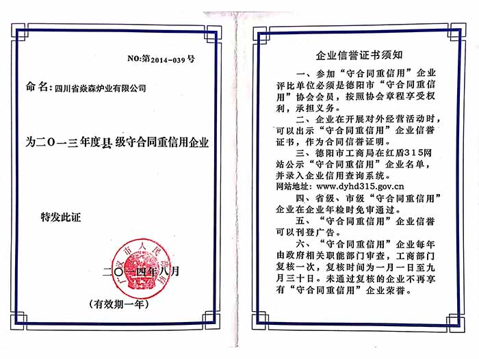 2、廣漢市守合同重信用企業、企業信用等級3A單位等榮譽資質